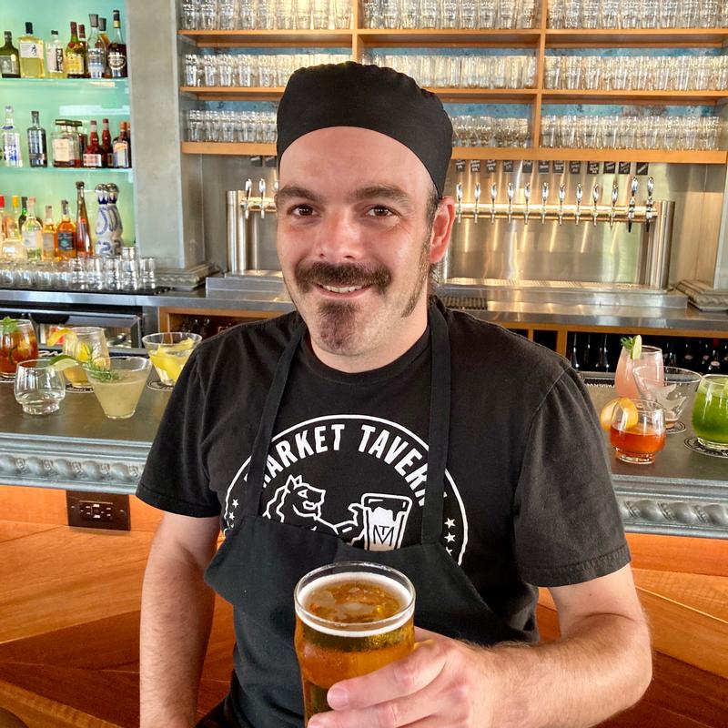 MARKET TAVERN, THE BRAINCHILD OF GARY TWINN, A RENOWNED MUSICIAN AND MANAGER OF E.B.'S. BEER & WINE AND BAR 326, IS A CONTEMPORARY BRITISH-CALIFORNIAN PUB AND RESTAURANT IN THE HEART OF L.A'S VIBRANT FAIRFAX DISTRICT.